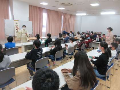 家庭科では、茶道体験をしました。