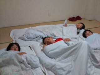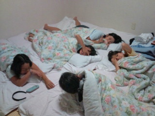 午後9時ピッタリに消灯です。海の水は冷たかったけれど、みんな元気にがんばりました。明日は晴れるといいですね。では、おやすみなさい。
