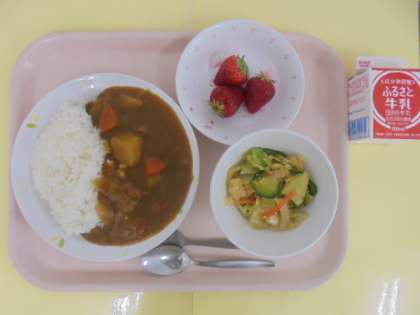 チキンカレーライス 牛乳 野菜の中華風味 いちご