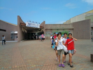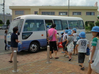 アクアパークから出てみると、いつの間にか青空が見えていました。これから送迎バスで民宿に向かいます。約10分で到着です。