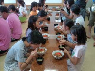 プールの後のお昼ご飯は、また格別です。お昼寝をして、2時からは午後の水泳指導が始まります。