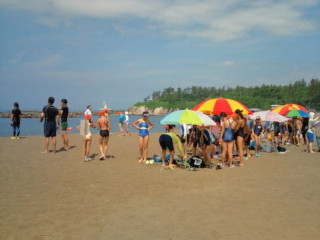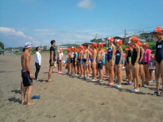午後の水泳指導が始まります。真夏の太陽のもとで、頑張って泳ぎましょう。