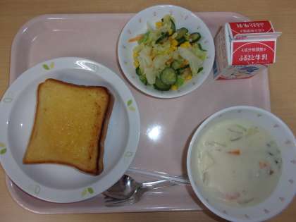 はちみつレモントースト 牛乳 クリームシチュー コーンサラダ