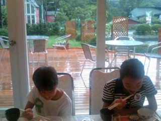 一時やんだ雨がまた降り始めました。今日は雨バージョンのコースになりそうです。