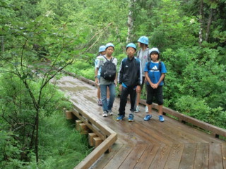 雨が降っていないので、湯ノ湖畔や湯川遊歩道の木道を1時間ほど歩きました。