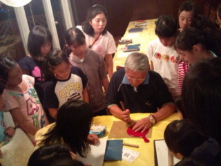 プロの職人さんのご指導で日光彫り体験をしました。専用の彫刻刀で、あらかじめ考えておいたデザインを彫っていきます。