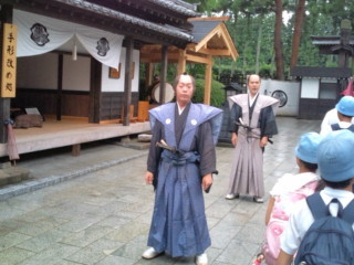 開門の儀式で迎えられ、日光江戸村の中に入りました。雨はやみました。さあ、楽しみましょう。