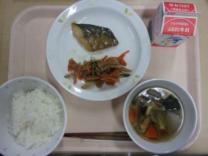牛乳 ごはん 魚の西京焼き 金平ごぼう のっぺい汁