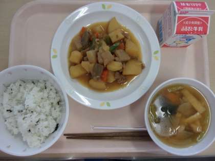 ☆今日のわかめとじゃこのごはんにはいっているじゃこは頭からしっぽまで丸ごと食べることができるのでカルシウムが豊富な食材です。子供たちはよく食べてくれていました。