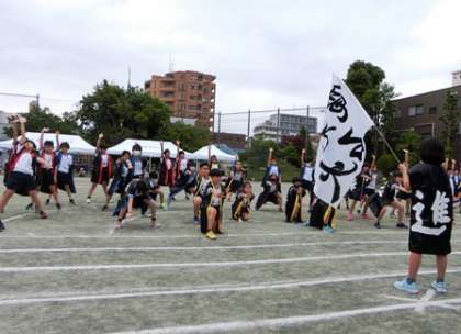 5年生は、日本の伝統的なソーラン節を踊りました。オープニングは、クラスごとに自分たちで振り付けを考えたそうです。さすが高学年ですね。大きな旗や黒い衣装が本当にクールで、たくましい動きに会場から大きな拍手が贈られました。