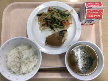 牛乳 ごはん 魚のごまだれかけ 糸寒天の和え物 鶏ごぼう汁