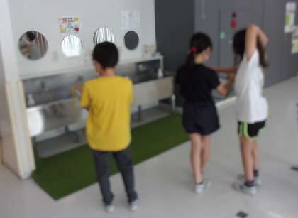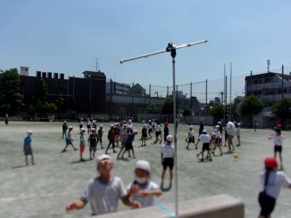 校庭に設置してあるミストが気持ちいいです(^^♪
