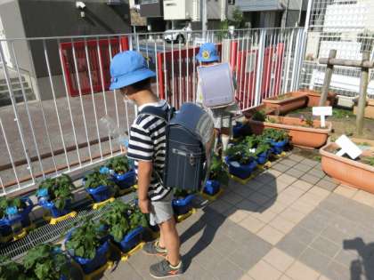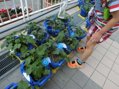 朝登校したら水をいっぱいあげているので、ぐんぐん成長しています。