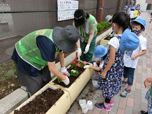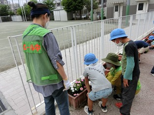 先週の月曜日に、2年生が「花の小径」の植え替えをしてくれました。たくさんの花がとても綺麗で、見るたびに元気をもらっています。何という花か知っていますか。日日草とベゴニアとポーチュラカです。色とりどりの可愛い花が次々と咲くので、これからも楽しみにしています。2年生の皆さん、水やりもよろしくお願いしますね。