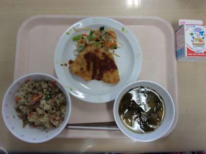 牛乳 五目ご飯 あじフライ お浸し 味噌汁