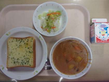 牛乳 ガーリックトースト ポークシチュー フレンチサラダ
