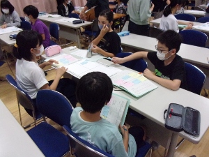 5年生では、国語の「よりよい学校生活にするために」の学習で、自分たちのクラスをよりよくするための話し合い活動を行いました。自分の理想のクラスを想像し、それに近づけるために、どんなことができるようになるとよいか考え、話し合いました。クラスのみんなで決めた「話し合いの評価基準」をもとに、付箋を使ってマトリクスに整理しながらグループで意見をまとめました。各グループの提案から、まずクラスで取り組みたいことをしぼり、学校生活の中で実践しています。