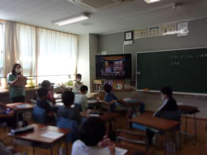 ジャムが作られる工程やなぜアヲハタの「ヲ」が、「オ」ではないのかなど、4年生の子供たちは興味、関心をもってオンライン見学をしていました。