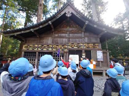 日光東照宮に14:00に到着し、バスの号車ごとに見学しています。