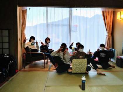 宿舎に戻り、15:30〜入浴が始まりました。待っている班は、部屋でくつろいでいます。部屋から見える景色も最高です。