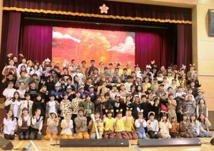 1年生は、「くじらぐも」が桜小に遊びに来たお話でした。英語や計算や縄跳びなど、入学してから勉強してきたことを堂々と発表しました。演技がかわいらしいだけでなく、全員合奏の「きらきらぼし」も上手で驚きました。
