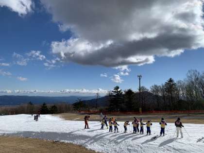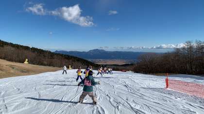 午後のレッスンが始まりました。初めて挑戦した子も、少しずつ滑れるようになってきました。