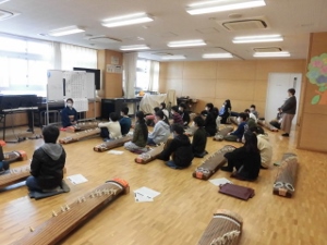 17日(月)・18日(火)の2日間で、5年生は琴演奏体験教室を行いました。初めて触れる琴に、最初はおそるおそる触っていましたが、講師の先生のご指導の下、最後にはよい響きを鳴らせるようになりました。今回は「さくら」を演奏しました。とても貴重な体験ができました。