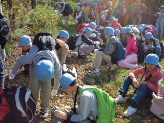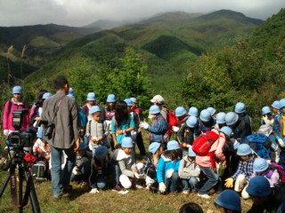 景色のいいところで記念撮影。ざくろ石や水晶捜しもしました。