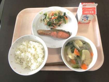 話は変わって、皆さんが学校で一番楽しみにしている時間はいつでしょうか。「給食の時間」という人はたくさんいることと思います。桜小の給食は、栄養士の初瀬先生や調理員の皆さんが心をこめて作ってくださるので、本当においしいですよね。今日は、その給食で使う食器のお話をします。