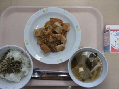 牛乳 ごはん 手作りふりかけ 生揚げそぼろあんかけ 大根と豆腐の味噌汁