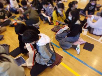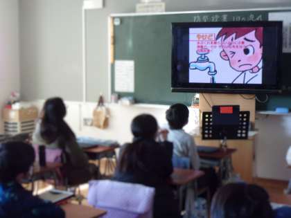 5年生は応急手当訓練、地震についてのDVDを視聴しました。
