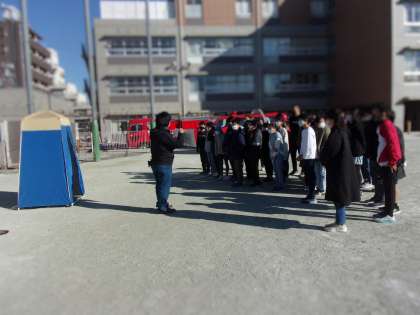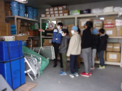 6年生は防災倉庫、マンホールトイレ設置見学を行いました。