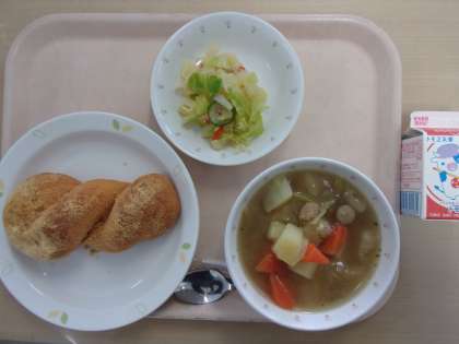 牛乳 きなこ揚げパン ポトフ イタリアンサラダ