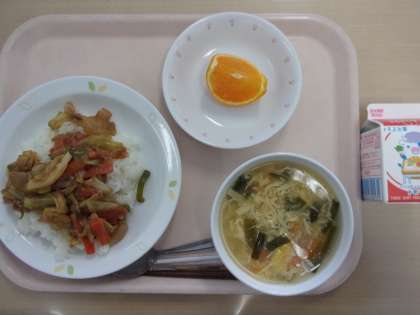 ☆今日は中国料理の「サンラータン」を出しました。お酢が入っているのですっぱいのが特徴です。「お酢」には体のつかれをとったり、食欲が出る効果があります。