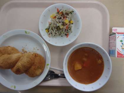牛乳 きなこ揚げパン チキントマトシチュー 大根とツナのサラダ