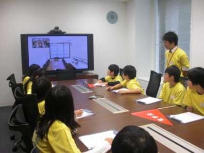 世界各地の人たちとテレビ画面を通して会議を行うことができるプレゼンテーションルームや、普段は絶対に入ることができない大きな貸金庫に子どもたちもびっくりの様子でした。