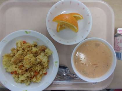 牛乳 ツナピラフ ユリアナスープ 甘夏