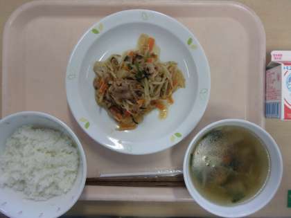 ☆今日は、「プルコギ」と「肉団子スープ」を出しました。「プルコギ」は韓国の料理で、日本の「すき焼き」に似ています。白いご飯に合うので、よくごはんも食べていました。「肉団子スープ」の肉団子は調理員さんが挽肉からこねて、一つ一つ丸めてくれました。
