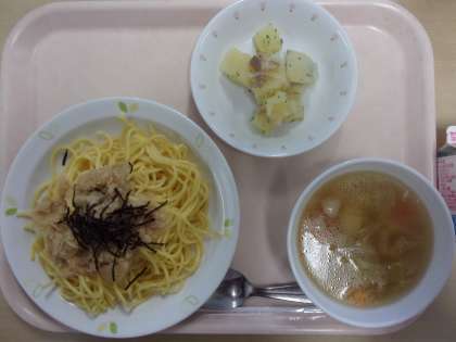牛乳 大根とツナの和風スパゲティ ジャーマンポテト コンソメスープ