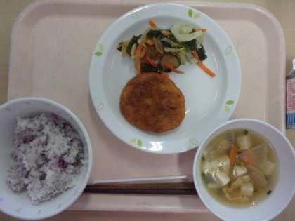 牛乳 ゆかりごはん ゼリーフライ 和風サラダ 吉野汁