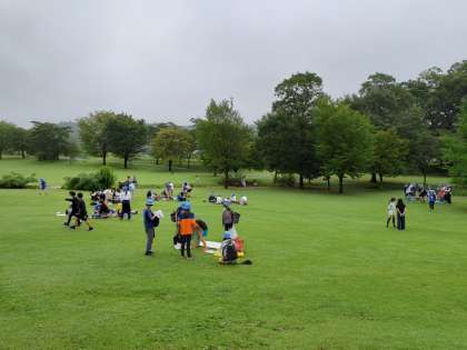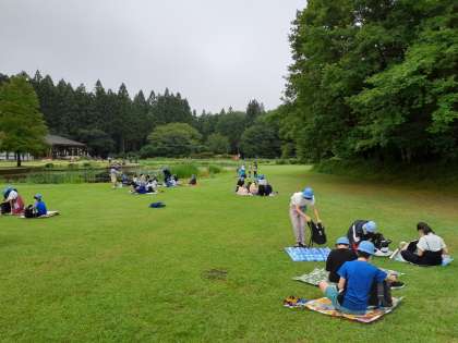 予定より早く、11:10にだいや川公園に到着しました。子供たちは、班ごとに昼食を食べています。美味しいお弁当のご準備、ありがとうございました。