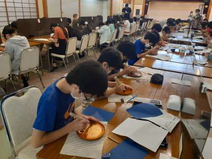 夕食の後は、日光彫りに挑戦! みんな、真剣に取り組んでいます。どんな作品が完成したのかは、どうぞお楽しみに。