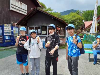楽しみにしていた、昼食後のアイスクリーム。並んでからの味は格別だったようです。口々に「おいしい!」と話していました。