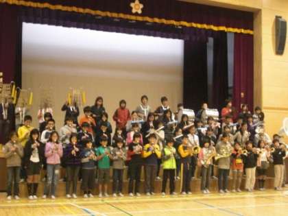 保護者会の前に、ボロ市パレードの演奏を保護者の方々に聴いていただきました。
