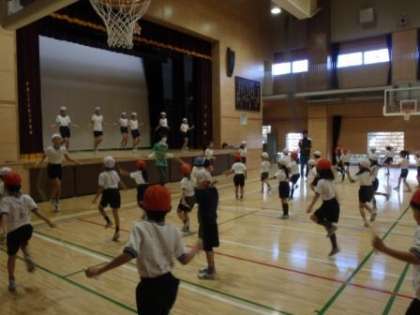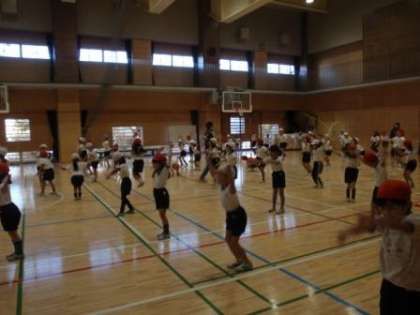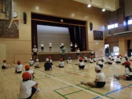 始めに5・6年生の体育委員会によるデモンストレーションを見ました。