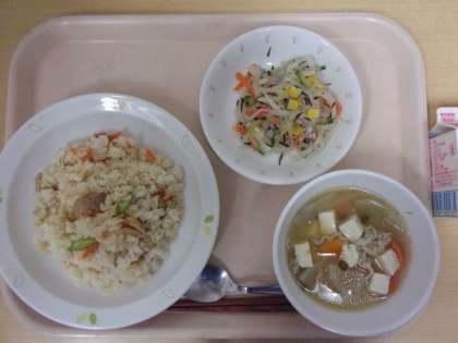 牛乳 小ぎつねごはん 大根とツナのサラダ 僧兵汁