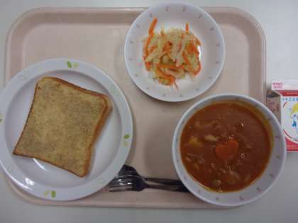 牛乳 セサミトースト チキントマトシチュー カントリーサラダ
