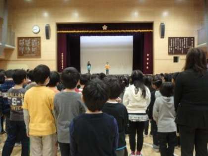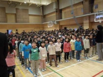 終業式では、校長先生のお話や児童代表の言葉(2年生と6年生)を聞き、久しぶりに校歌を歌いました。しっかり覚えていました。(写真中央:歌詞のボードを見ている人も!!?)