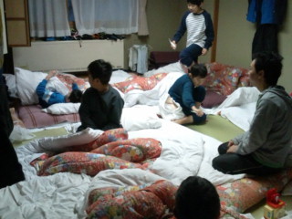 2日目の朝です。みんなサッと起き上がりました。外は晴れています。