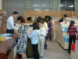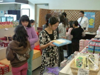 お風呂から上がったあとは、おみやげタイムです。今日は女子、明日は男子の順です。どれを買おうか迷っています。